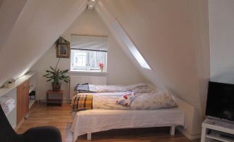 在奧胡斯過一夜定了這個民宿,很乾凈,我那天天氣好房間裏都是陽光,還有電視和小冰箱,晚上進到花園裡燈就自動亮了,很童話故事,共用的區域很乾凈,小閣樓裏住的超舒服,也非常安靜。説的是2點check in 因為我飛機早上10點就到了,想説給房東打電話放下行李下午再來,結果可能我前面也沒有房客,他直接就把鑰匙給我就住進去了。