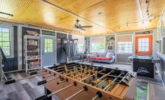 INDOOR LIVING: All rooms except kid's room, including a Leaving Room, and a Game Room have Smart TVs with DISNEY+, ESPN+, HULU, Fiber Optic internet, high ceilings, ceiling fans, for rainy days our game room offers so much to do including KARAOKE STATION, BASKETBALL STATION, OLD SCHOOL ARCADE GAME CONSOLE (power switch is under the console left side from lake side), TABLE SOCCER, TABLE HOCKEY AND LOTS MORE (see picture)
