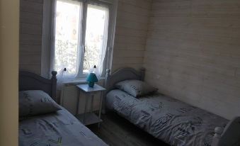 In a quiet setting, an enclosed and closed garden, its terrace, our house with its garage has a living room with a BZ sofa for additional sleeping, an open fitted and equipped kitchen, a bathroom fitted with a shower and WC, the 1st bedroom with a double bed of 140, the second bedroom with two single beds of 80 ,.