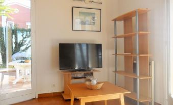 Fully equipped house with garden of 75 m2 including a large living room with open kitchen, 2 bedrooms and two bathrooms and toilets.