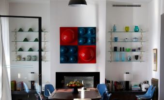 In this house, charm quarrels with comfort, luxury with simplicity, refinement with authenticity. The decoration, mainly fifties and vintage furniture which does not prevent any foray into the seventies, place this villa in the line of the most beautiful Californian mansions of Palm Spring or Los Angeles, while paying homage to the craftsmanship Moroccans in delicate zeliges, efficient terrazzo, rustic bejmat, mysterious patios, colored cement tiles, ornate grilles, inspired arabesques and others throughout the six rooms all equipped with fireplace, central heating and air conditioning, a bathroom marble bathroom with bidet and toilet, private terrace and king size bed. (except a queen size). A cinema room where it is good to retire to take advantage of the video library particularly provided, warm or cool depending on the season. The 21m pool can be heated and its pool house which extends it allows you to bask away from the sun at the hottest hours. The nearly one hectare garden is planted with olive, orange, lemon, palm and jasmine trees which scent the air and delight the view. In the distance the Atlas stands proud and majestic, the perfect backdrop to this idyllic setting.