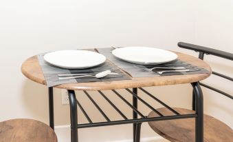 Kitchen: Our fully equipped kitchen is ready for all your culinary needs. With modern appliances, ample counter space, and all necessary cookware and utensils, you can easily prepare your favorite meals. Enjoy your dishes at the cozy dining area that seats four.