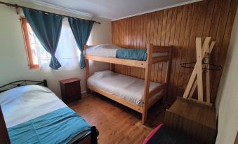 2 bedrooms: 1 bunk bed 1 single bed and 1 double bed