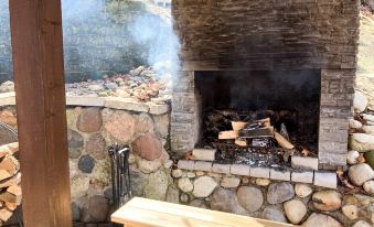 At night, gather around the giant outdoor fire place to roast marshmallows with your family before retiring to the bedroom or couch for a good night's sleep.