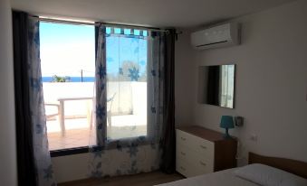- on the mezzanine floor 2 bedrooms, the first with double bed and sea view terrace equipped with table and chairs, the second with 2 single beds.