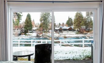 Welcome to "May The Forest Be With You," otherwise known as Bend Riverside Unit 202. This sweet vacation spot sleeps 2 people with a full kitchen and handicap-accessible bathroom. You have 8 foot glass doors that give you an incredible view of the Deschutes River. Open those large doors, step outside onto your riverfront patio and take in the sights and sounds of the rushing river.