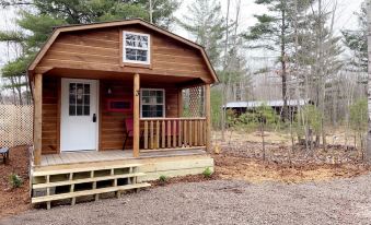 Little slice of nature… This cabin is nestled in the woods with its own fire pit/bbq/picnic table area. The cabin has a 6’ covered porch with sitting area to enjoy your morning coffee while watching the nature just feet away.