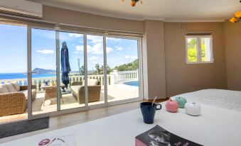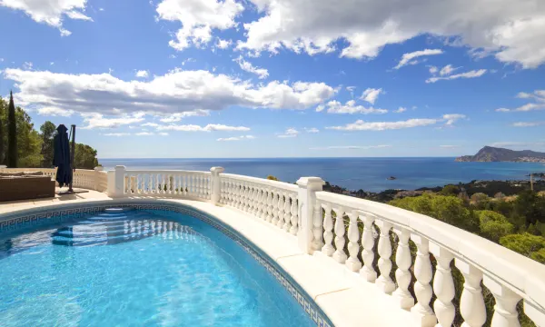 Beautiful villa "Otra Vida", 2 storeys. 5 km from the centre of Altea, 8 km from the centre of Calpe, in a quiet, sunny position, traffic calmed area, 2 km from the sea, 2 km from the beach. Private: property (fenced), swimming pool (10 x 5 m, seasonal availability: 01.Jan. - 31.Dec.). Terrace, barbecue. Grocery 1 km, supermarket 1 km, restaurant 2 km, bus stop 3 km, sandy beach "Playa de l'Olla" 3 km, rocky beach "Playa Mascarat" 2 km. Sports harbour 2 km, marina 2 km, golf course (12 hole) 4 km. Nearby attractions: Aqualandia, Mundomar, Terra Mítica, Terra Natura, Benidorm Palace (Benidorm), Les Fonts de l'Algar, Castillo de Guadalest, Peñon de Ifach. The owner does not accept any youth groups. "Otra Vida", 7-room villa 370 m2 on 2 levels. Spacious and bright, comfortable and beautiful furnishings: open large living/dining room with satellite TV, air conditioning, fan and forced-air heating. Exit to the terrace. 1 room with 1 french bed (1 x 180 cm, length 200 cm), shower/WC, air conditioning and forced-air heating. 2 rooms, each room with 1 french bed (1 x 180 cm, length 200 cm), air conditioning and forced-air heating. Open kitchen (oven, dishwasher, 4 ceramic glass hob hotplates, toaster, kettle, microwave, electric coffee machine). Shower/WC. On the lower ground floor: 1 room with 1 french bed (1 x 140 cm, length 200 cm), shower/WC, air conditioning and forced-air heating. 1 room with 1 french bed (1 x 180 cm, length 200 cm), air conditioning and forced-air heating. Exit to the terrace. 2 large terraces. Terrace furniture, barbecue, deck chairs, sitting area. Panoramic view of the sea and the resort. Facilities: washing machine, iron, hair dryer. Internet (WiFi, free). Parking. Please note: non-smoking house. CV-VUT0516604-A ESFCTU0000030530001734790000000000000CV-VUT0516604-A1