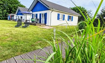 Modern, cosy single-family house, built in 2015, surrounded by meadows and fields. 44 houses in the resort. On the outskirts Altefähr, 400 m from the sea, 400 m from the beach, in the countryside, south facing position. For shared use: property 340 m2, small terraced garden with lawn. In the house: infrared sauna, storage room for bicycles, washing machine. Parking space n 26. Grocery, bakery 300 m, bus stop "Bahnhof Altefähr" 2.3 km. Golf course (18 hole) 40 km, children's playground 400 m, fishing possibilities 350 m. Nearby attractions: Stralsund 5 km, Nationalpark Jasmund - Königstuhl 50 km, Ostseebad Binz 42 km. "Inselsommer", 3-room house 62 m2. Bright, tasteful and cosy furnishings: living/dining room with TV, CD-player and DVD. Exit to the garden, to the terrace. 1 room with 2 beds (90 cm, length 200 cm). 1 room with 1 double bed (180 cm, length 200 cm). Kitchen-/living room (oven, dishwasher, toaster, kettle, microwave, freezer, electric coffee machine) with dining table. Exit to the garden, to the terrace. Shower/WC. Small terrace 7 m2. Terrace furniture, barbecue, deck chairs (2). Facilities: iron, hair dryer. Internet (WiFi, free).