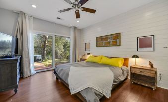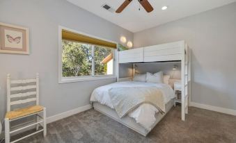 With three bedrooms and two and a half bathrooms, our home can accommodate up to ten guests in luxurious comfort. The master bedroom is a true oasis, with a comfortable king-size bed, flat-screen TV, and en-suite bathroom. The second bedroom also boasts a king-size bed, while the third offers a queen-size bed and twin loft bed, both with access to a shared hallway bathroom. For even more sleeping arrangements, the office includes a sleeper sofa, and the main living area huge couch 55" inches deep! Each of the bedrooms feature large windows that let in plenty of natural light and stylish décor, creating a warm and inviting ambiance.