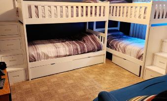 3 bedrooms: 2 bunk beds 1 queen bed and 1 king bed