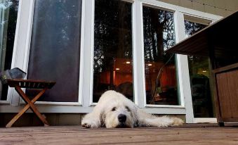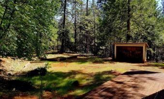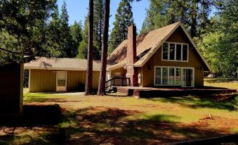 With BBQ, WiFi, AC, heating, a large deck and flat backyard with fire pit where guests can stay connected, comfortable and enjoy nature. Multiple tall tree tops including Cedar, Sugar Pines, Madrones and Dogwood encompass the property.
