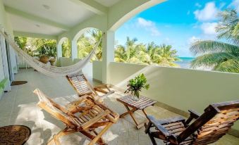 A rooftop deck offers the best of all worlds –360º views of the Caribbean Sea, with sunrises over the planet’s second-largest barrier reef AND kaleidoscopic sunsets over the lagoon. From up here, you can even see our neighboring island of Caye Caulker and the world-famous Hol Chan Marine Reserve!
