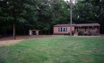 Relax with the whole family at this peaceful place to stay. The house has a king bed in the master with attached bath, a secondary bedroom with 2 queens, an additional hall bath and a queen air mattress for additional sleeping space. It sits on a stocked pond with a fishing pier. You will have access to fish and relax at our catch and release pond. The outdoor space also includes a patio with gas grill, large front porch overlooking the pond, covered back porch overlooking woods and a fire pit.