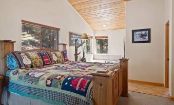 This beautiful chalet-style cabin sleeps up to 14 and offers everything you need for a great mountain getaway. It's super close and convenient to the ski mountain and has gorgeous views. Enjoy the new 6-person hot tub, WiFi and Satellite TV. The hot tub is just steps away - the perfect place to unwind after a day on the mountain. The master bedroom also has a beautiful jetted tub. Enjoy the valley views while grilling on the new gas grill or just relaxing on the deck. The open concept living area lets you enjoy the view from inside and the gorgeous stone fireplace will keep you warm. The fully stocked kitchen allows you to cook up your favorite meals. There are 3 bedroom and a loft with bunk beds. Downstairs is a bonus game/bunk room that is perfect for the kids. It comes complete with a a double shot competition basketball game, foosball, board games and TV. Outside you can enjoy the large firepit, perfect for making s'mores and enjoying the nighttime sky. This cozy cabin is perfect for making memories that will last a lifetime!