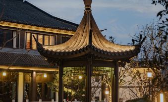 Anji Eryuehua Resort Hotel is nestled amidst the lush mountains of Anji, in close proximity to natural wonders such as Cloudy Grassland Scenic Area, Xianlong Gorge Rafting, and Lingxi Mountain, as well as off-road and paragliding bases. Guests can enjoy refreshing river dips in summer and skiing fun in winter. The surrounding area boasts a high vegetation cover, creating a natural oxygen bar. With its strategic location, the hotel is just a one-hour drive from Hangzhou, making it an ideal leisure destination for the Jiangsu, Zhejiang, and Shanghai regions. With a babbling stream flowing in front, guests can experience the joy of stream tracing in summer.The hotel boasts 44 guest rooms with ancient Chinese-style characteristics, spanning over 5,200 square meters and featuring a green coverage rate of 70%. It features a 2,000-square-meter landscape pool, a 230-square-meter infinity pool, and a 300-square-meter special karst hot spring (including public and private baths). Additionally, there is a 300-square-meter lawn by the water, with a unique architectural landscape blending ancient style with modern art, offering an elegant, comfortable, and artistic experience and a unique modern cultural stay.The hotel is well-equipped with various functional areas such as conference halls and banquet halls, as well as leisure venues like KTV, viewing decks, and outdoor lawns. Each guest room is furnished with air conditioning, internet facilities, mini-refrigerators, HD TVs, smart toilets, and Herborist bathing amenities. Some rooms also come with independent desks, sofas, coffee machines, fireplaces, study rooms, and bathtubs.The hotel restaurant offers a diverse range of Chinese and Western, Asian, and local specialty cuisines in various forms, including buffets and set meals. In the dining halls named "Xunlan," "Shengying," and "Shangli," guests can savor authentic Anji flavors as well as fusion dishes of Cantonese and Guizhou cuisine. During your stay, you can enjoy complimentary access to facilities such as the hotel pool, hot spring pools, and children's playground. Paid activities include mahjong rooms. Furthermore, the hotel provides a variety of experiential activities such as outdoor camping and picnics, and stream tracing, enriching your vacation. With butler service throughout, you will enjoy exclusive experiences and feel a unique vacation atmosphere.
