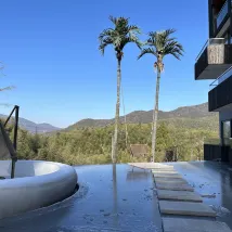 The hotel is high in the mountain and surrounded by trees. The bed and pillows are comfortable. The person at the reception was helpful. I booked the loft suite, which was nice in design and very spacious with a second floor connected by stairs. Nice balcony and an open air bathtub on the second floor terrace. I liked that the tab water in the kitchen sink was filtered (there was a fridge, but no stove)
