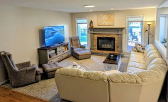 This large, open-concept ranch home offers the perfect blend of comfort, entertainment, and convenience for your next getaway. With four bedrooms, three full baths, two expansive living areas (each featuring a 65" smart TV), a fully stocked kitchen, and a game room, there's something for everyone to enjoy.