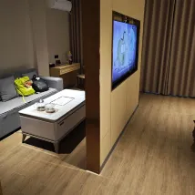 This hotel is amazing. The whole house is smart. Xiaodu will do everything for you just by lying on the bed and talking. The room is spacious and bright. Every facility is carefully designed and the details are meticulously reflected. I am very satisfied with the clothes hangers. I can hang my coats and sweaters on them. There is still plenty of space. The slippers are of good quality and have thick soles. The children especially liked the robot service here, and they even ordered takeout to experience the fun of having the robot deliver it to the room. I will definitely choose this hotel again when I come to Anshan next time.