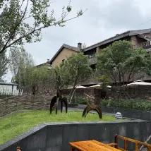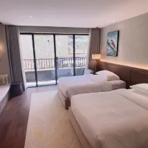 The front desk staff proactively contacted us via WeChat to confirm our arrival time and arranged for a car and driver to pick us up from the station. The pickup staff was incredibly friendly, proactively helped with our luggage, and offered excellent recommendations for nearby attractions. We were then transferred to a scenic area shuttle bus that took us directly to the guesthouse entrance. The reception staff were also very warm and friendly. The hotel boasts a beautiful environment and is conveniently located within the Enduli scenic area. Check-in was quick and efficient, with staff assisting us with our luggage and guiding us to our room. Our ground-floor room featured a private courtyard with a table and chairs, which was incredibly relaxing. We were even welcomed with complimentary snacks. We enjoyed a fantastic fireworks display from the hotel's third floor in the evening. As we had an early train to catch, the restaurant kindly prepared breakfast for us. The hotel also provides outdoor seating with parasols. Overall, the experience was absolutely fantastic!