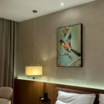 The second-floor lobby features bird specimens, truly enhancing the feeling of being immersed in nature. The room itself is impeccably clean, and the bathroom is spotless – not a single water stain. Even the plants are dust-free, perfect for those who appreciate meticulous cleanliness.