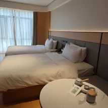 The hotel is close to Anyang East Station and provides business car pick-up and drop-off services. Although there was a power outage on the first morning, there were attendants on each floor, which made me feel at ease. The hotel room is large and the breakfast is average.