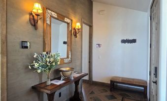 The home is beautifully furnished. Spotless and inviting. The bed was so comfortable. A hot bath in the copper tub was perfect after riding motorcycles all day. You are surrounded by phenomenal views while poech sitting. The outdoors is beautiful with all the different plants, flowers and trees. The owner's were very responsive with all inquiries.