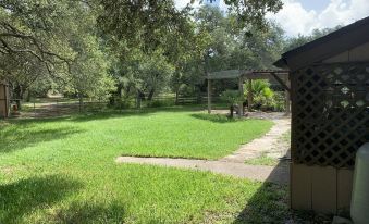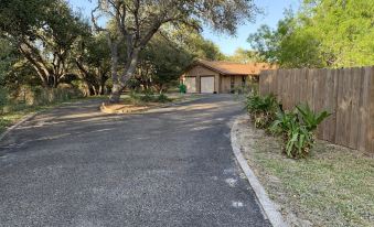 The Downing Ranch is nestled under mature live oak trees on 2 fenced in acres. This four bedroom two bathroom ranch house has an oversize master bedroom and large guest bedrooms. Premium furnishings and high end linens. The main living area has a vaulted ceiling and a wood-burning fireplace. The dinette area will seat six comfortably. The kitchen counter extends out to accommodate four bar stools. The kitchen offers stainless appliances with plate ware to accommodate 13 guests. We offer a workstation with a printer in one guest bedroom with high-speed Wi-Fi included. The home boasts a large screened in back patio with a beautiful view of the backyard. The home is located minutes away from Aransas Pass community Park, 20 minutes to Rock port beach, 15 minutes to Port Aransas, less than 10 minutes from Conn Brown boat ramp and 30 minutes to Corpus Christi. There are countless other attractions this area has to offer. Perfect location for fishing, beach activities, shopping and dining. The Downing Ranch grounds are protected by a 24 hour surveillance system that monitors the driveway and 360 degrees around the residence. About pets:Pets allowed: dogs and cats (limit 3 total).Pets must be kenneled when left alone..About checkOut:Check out before 11:00 AM.About children:Children allowed: ages 0-17.About customRules:Pets are not permitted on beds or furniture. You are responsible for picking up your dogs waste..About checkIn:Check in after 4:00 PM.About smoking:Smoking is not permitted.About minBookingAge:Minimum age to rent: 25.About events:Events allowed: family gatherings, birthday parties, weddings.Maximum event attendees: 30,All events are subject to additional charges.