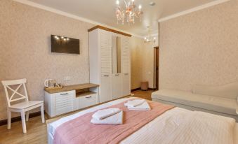 The hotel has 30 rooms of various categories. The rooms are equipped with ergonomic furniture, bed linen, towels, an outlet by the bed, a plasma TV, Wi-Fi access, a bathroom and hygiene products.