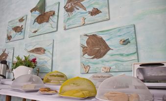 O hotel é curioso! Tem diversas artes espalhadas pelas acomodações, e cada virada de pescoço é uma surpresa. O café da manhã é simples, mas preparado com carinho. Te servem na mesa frutas, pães , frios, manteiga, geléia e bolo, e você ainda pode pedir ovos mexidos e tapiocas. A dona da pousada estava sempre presente. Uma simpatia de pessoa, muito agradável. Pelo preço, a acomodação foi boa! Muito bem localizada, somente 2 quadras da Rua do Mucugê e poucas quadras distante da praia. O quarto tem um bom tamanho. Possui ar condicionado e rede na varanda. Bom custo benefício.