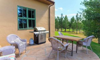 This home is a fabulous vacation location. It is situated on five irrigated acres in the foothills above the village of Arroyo Seco. You can walk or ride bikes to the town along a creek on a tree-lined road.