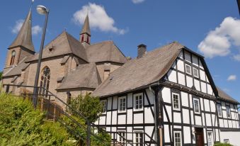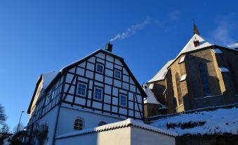 In the center right below the old parish church of St. Catherine is the pastorate built in 1775. The newly renovated 130 sqm combine the charm of the time-honored half-timbered house with modern comfort and moments of wellbeing.