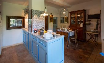 The property, arranged over three floors, is finely furnished with carefully researched furniture, rugs and paintings from various countries of Europe and Italy. The recurring colors are the yellow of the gorse and the blue of the lavender and the sky.