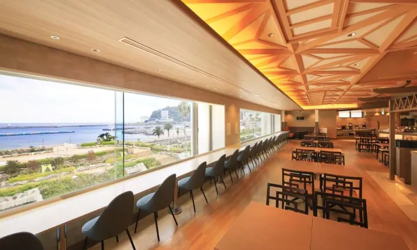 The hotel located in front of Sun Beach offers ocean views from all rooms. Guests can enjoy the sunrise and panoramic views of Sagami Bay from their rooms, and at night, the beautifully illuminated scenery provides a magical experience. Within a 10-minute walk from the hotel, there are dining places and restaurants, making seaside strolls convenient. The guest rooms have different atmospheres on each floor, including modern Japanese-Western rooms, Asian twin rooms, and premier ocean view rooms. The restaurant is buffet-style, offering fresh seafood and a variety of Japanese and Western ingredients. The large public bath draws water from an on-site hot spring, allowing guests to enjoy the high-quality Atami hot springs.