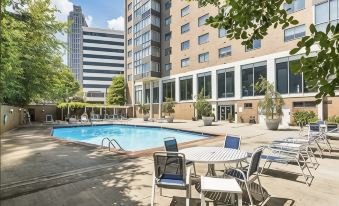 Enjoy the convenience of one free on-site parking spot and access to a seasonal pool. The location is close to MARTA Rail, America's Mart, World Congress Center, GA Capitol, Peachtree Center, Mercedes-Benz Stadium, GA Tech & State Sports Stadiums, World of Coca-Cola, Georgia Aquarium, and Centennial Olympic Park.