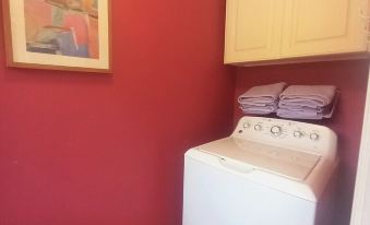 I give this home an 11/10. Close to everything, comfortable beds, quiet neighborhood, beautifully furnished and decorated. The pictures do not do this place justice! Owner is very kind and helpful. We stayed 3 nights and will be back! The media room off the master has a sofa and tv plus a desk, which I used to work remotely for 3 days. Kitchen is large and well stocked. Even the couches are super comfortable. Both bedrooms are large. Backyard was great with 2 seating areas. Off street parking in the shade. Laundry room in the home. Large pantry for groceries if you’re staying for a while. Bathroom is spacious and towels were plush. I cannot think of a single thing this home was missing. Highly recommend.