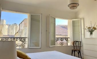 The bedroom has its own airconditioning system (new since May 2023) with 1 bed 140cm. The room is north for more freshness and quiet courtyard. Views on the Pope Palace from the bed.