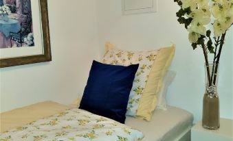 The apartment is on the quiet back of the villa with a view of the greenery. The apartment is furnished with beautiful pictures, comfortable beds and modern furniture. The apartment has a balcony with comfortable lounge chairs.