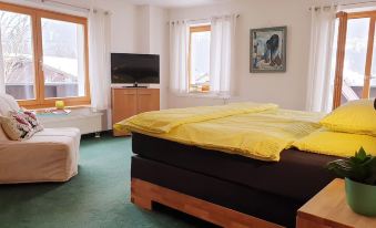 The comfortable equipment of the nine apartments offers everything you need on holiday for your comfort and well-being. Fitted kitchens, shower / WC, partly whirl pool tubs and tiled stoves, 2x TV in all apartments, free Wi-Fi and safe belong to our standards. With our Sky contract, you can experience live football and international top-class sport in the lounge.