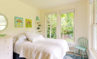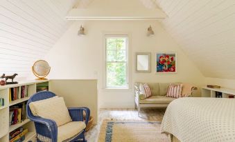 Reminiscent of an old barn on the outside, the farmhouse is luxuriously fresh, contemporary, and romantic. Enjoy morning coffee on the porch surrounded by nature. Wander miles of forested trails or a casual island bike ride or paddle nearby waters. Located in the historic farming community of Eagledale, your lovely 850 sf home is two miles from the ferry and a short walk to forest trails and Puget Sound waters. You will love the fresh, white, modern and light-filled interior. Radiant pipes heat the concrete floors and wood-planked vaulted ceilings top off the bright space you will call home. A special Vermont Castings propane stove keeps the space warm and cozy while thoughtful finishes show incredible attention to details. Privacy abounds in your space and on the surrounding green space. We love to have dog visitors and provide special amenities when you let us know that your 4-legged family is joining you when you book your stay.