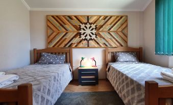 3 bedrooms: 2 bunk beds 2 single beds and 1 king bed