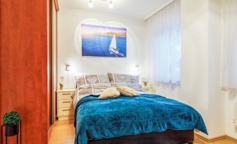 Balatonfüred: Large apartment block "Lily". In the centre of Balatonfüred, in a central position, 250 m from the lake, 300 m from the beach. In the house: WiFi, air conditioning. Parking space n 16. Grocery 400 m, supermarket 750 km, restaurant 600 m, bakery 900 m, café, pedestrian zone 300 m, bicycle rental 1000 km, bus stop "Balatonfüred, Kiserdő" 550 m, railway station "Balatonfüred, Arács" 900 m, grass beach 300 m, thermal baths "Hévíz" 69 km. Marina 1 km, golf course (18 hole) 9 km, sailing school 1 km, tennis 230 m, indoor tennis centre 4 km, sports centre 4 km, cycle lane 200 m, children's playground 450 m. Nearby attractions: Wine Festival in August 200 m, Lóczy Cave Visitor Center 2.7 km, Vaszary Gallery 1 km, Annagora Aquapark 2 km, Bodorka - Balaton Aquarium 700 m, Tihany 8 km. The keys‘ handover takes place by the agency Interhome in Balatonfüred, 1 km. 3-room apartment on the lower ground floor. Comfortable furnishings: living room with digital TV and flat screen. Exit to the balcony. 2 double bedrooms, each room with air conditioning. Kitchen (oven, dishwasher, 4 ceramic glass hob hotplates, toaster, kettle, microwave, freezer, electric coffee machine) with dining table. Shower/WC. Heating, electric heating. Facilities: Internet (WiFi). EG24097810