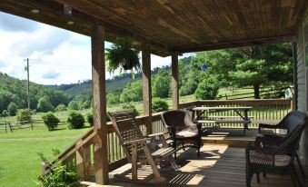 This quaint, century-old farmhouse offers an excellent venue for experiencing the Appalachian countryside: fresh mountain air, babbling brooks, nature at your doorstep. Tucked away on a dead-end road with extensive hiking trails right on the property, the Old Farmhouse takes one back to a slower day, a simpler time. Generous decking wraps around three sides, ending in a covered porch from which unfolds the brilliant green valley and a pastoral scene that will keep you dreaming wistfully from the porch swing.