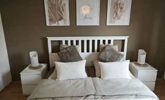 Schöne Ferienwohnung mit 2 separaten Schlafzimmern und Garten. Die beiden Schlafzimmer sind jeweils mit einem Doppelbett ausgestattet. Liebevoll hergerichtete Schlafzimmer und Stube. Küche ist ausgestattet mit allem was man braucht.