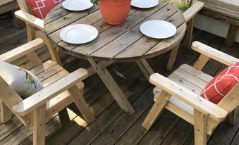 This house is a true charm. My family and pups had a fantastic time hiking, walking in town,and eating lobster. It was great to know we had this house to come back to at the end of the day. The host, Bobby, provides EVERYTHING you need for an excellent stay. Communication with him is prompt and complete. We will definately book again if we visit again. My husband and son enjoyed the front porch with morning coffee and my daughter and dogs enjoyed the deck out back in the sunshine. We arrived a few minutes early for check in and met Bobby when he was finishing a few last touches of the property for us. Stay here. You won't be disappointed -- you won't want to leave!