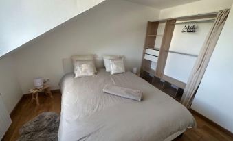 3 bedrooms: 2 single beds 1 queen bed and 1 double bed