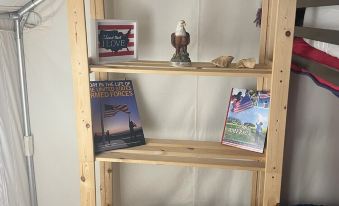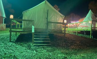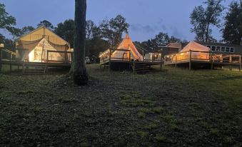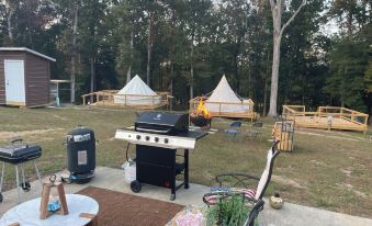 Consider this campground your home away from home while you visit Eufaula. The Patriot is Veteran Owned with a breathtaking waterfront. Glamping directly on Lake Eufaula shared with the Anchor and Redfish tents. GrandView Glamping connects us to nature by using a tent - a canvas structure that brings back those memories of true camping but with some comforts from home. Through the woods you can see the water and easy access to the lake by waterways. This cozy retreat features 1 bunk bed with full and twin beds, and 1 sofa bed in the bedroom, along with 2 bathrooms equipped with showers. Enjoy the convenience of amenities like coin laundry, AC, heating, a washing machine, and WiFi. Fall in love with Eufaula and enjoy the magic it has to offer.About pets:Pets allowed: dogs (limit 2 total).About checkOut:Check out before 11:00 AM.About children:Children allowed: ages 0-17.About checkIn:Check in after 4:00 PM.About smoking:Smoking is not permitted.About minBookingAge:Minimum age to rent: 21.About events:Events allowed: family gatherings.Maximum event attendees: 15.
