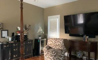 Be one of the first to stay in this newly available, private, cottage-like unit located on the main level in the rear of a beautiful restored Victorian home. Situated in the historic district of downtown, it’s a one block stroll to many shops, restaurants and attractions of Bardstown. Offering a private entrance off a covered patio, perfect for enjoying afternoon cocktails and morning coffee. It’s spacious, newly renovated, and very tastefully decorated. Everything you need. Perfect for couples!