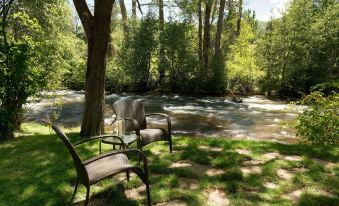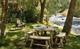 The cabin was originally built by Colorado Midland Railroad workers in 1896, it was restored a century later in 1996. The cabin was renovated again in 2005 and 2015 . The cabin is decorated in an elegant mountain style and includes luxurious linens, comfy robes, down pillows, radiant in-floor heating, fireplace and all the amenities you would expect at a nice hotel. The sliding glass door opens up to the views and sounds of the Frying Pan River rushing by. The cabin guests' are welcome to fish on the Frying Pan River in front of the cabin and also upriver towards the main lodge.