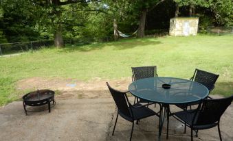 Overall property was nice. Clean house, comfy beds and the fenced in back yard is awesome. Mostly upset that from the listing I thought the swim dock was right outside our cabin but it's not. It's not a long walk but it's down a rocky road that I definitely don't recommend driving. We have a toddler and I didn't even attempt the walk down with him, it would be too much and then the trek up after swimming. The a/c units they have did a good job keeping the house pretty cool, along with some fans going. The area is nice too and about 10-15 minutes from town with plenty of places to eat!